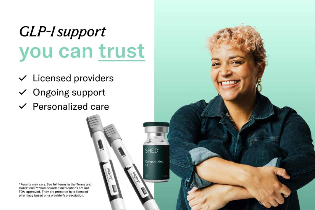 Shed meets you where you are with personalized GLP-1 care from licensed providers, one-on-one health coaching, and medications delivered to your door if prescribed. Over 150,000 members have lost 800,000+ lbs without turning their lives upside down. Support designed for real life, not perfection.